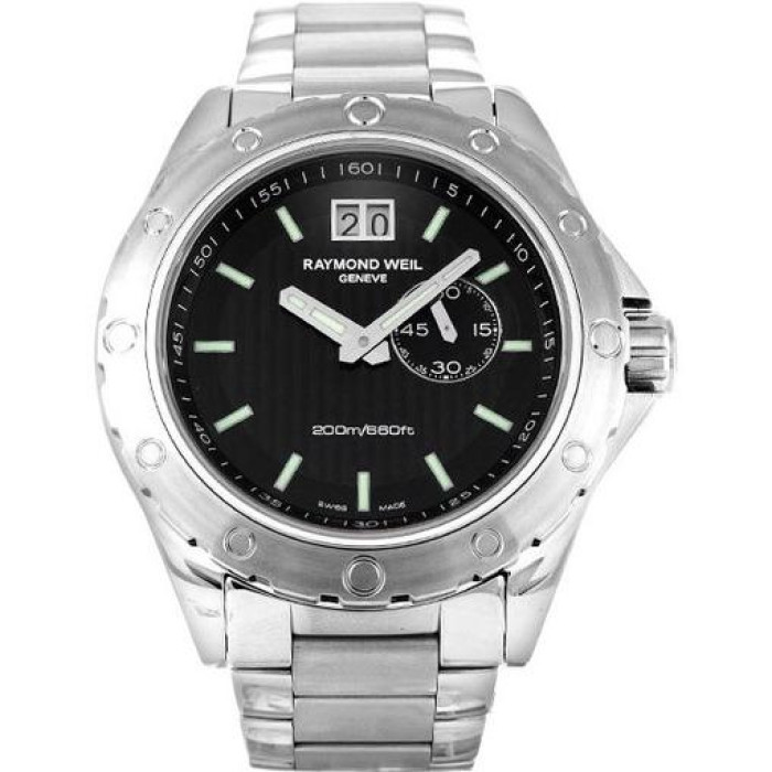 Швейцарские часы Raymond Weil, 8300-ST-20001 из коллекции RW Sport. Часы Раймонд Велл являются солидным аксессуаром, подчёркивающим ваш вкус. В данной модели тип калибра - кварцевый. В качестве материала корпуса и браслета используется сталь. На циферблате есть указатель даты. Среди прочих преимуществ часов - их водостойкость. Габариты корпуса - D 44 мм.