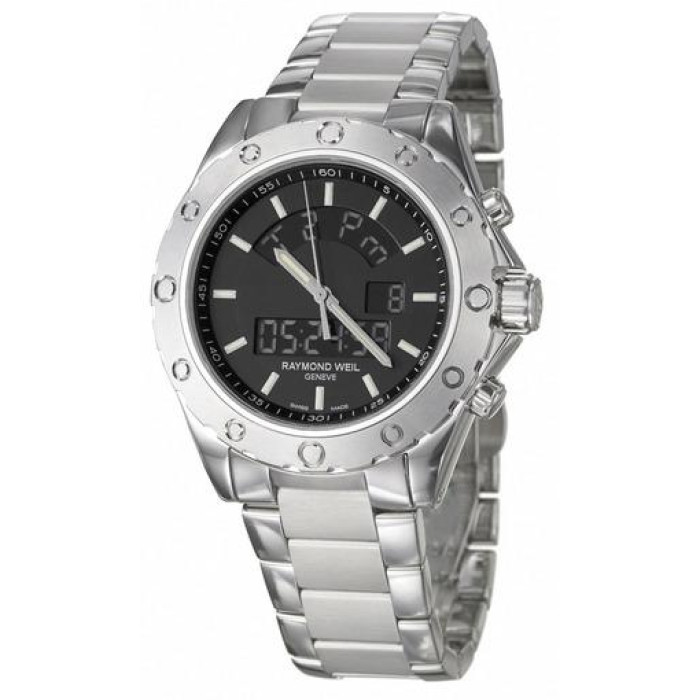 Представляем вашему вниманию часы фирмы Raymond Weil, артикул 8400-ST-20001. Родиной этой фирмы является Швейцария. Часы Раймонд Велл являются солидным аксессуаром, подчёркивающим ваш вкус. Тип механизма в часах - кварцевый. В качестве материала корпуса и браслета используется сталь. Имеется индикатор даты. Среди прочих преимуществ часов - их водостойкость. Габариты корпуса - D 44 мм.