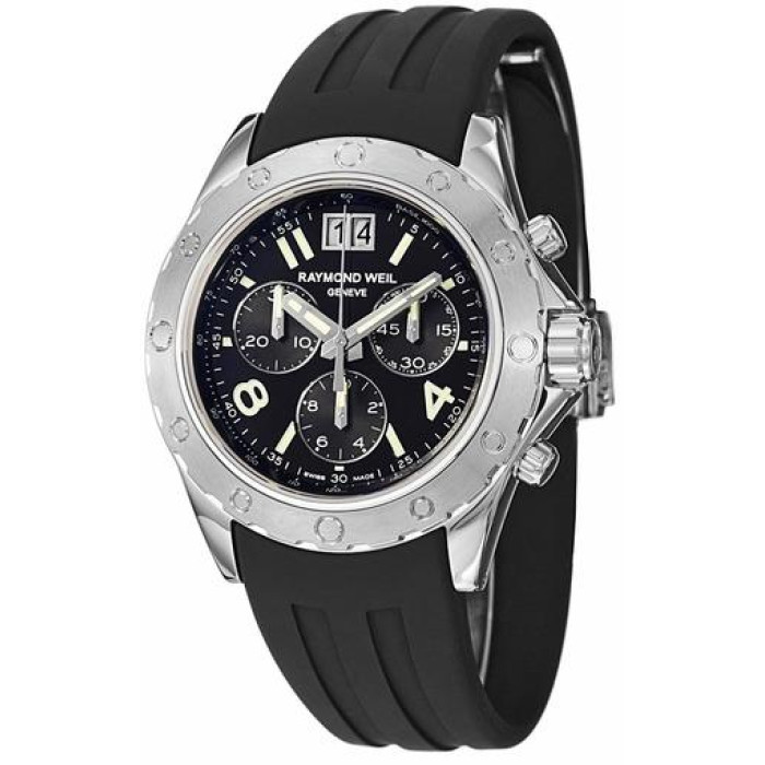 Перед вами часы фирмы Raymond Weil, Швейцария. Данный артикул 8500-SR1-05207 принадлежит коллекции RW Sport. Часы Раймонд Велл являются солидным аксессуаром, подчёркивающим ваш вкус. В данной модели тип калибра - кварцевый. В качестве материала корпуса используется сталь. Материалом ремня является каучук. Имеется индикатор даты. Среди прочих преимуществ часов - их водостойкость. Размер часов D 44 мм.