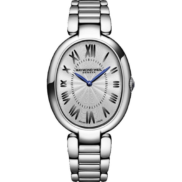 Швейцарские часы Raymond Weil Shine 1700-ST-00659 в элегантном женственном стиле. Серебристый циферблат украшен гильошированием в стиле «капли». Овальный корпус из нержавеющей стали на браслет с литыми звеньями дополнен кожаным ремешком с сатиновым покрытием, чтобы владелица престижных часов Shine могла изменить их дизайн под свой сегодняшний имидж. Сапфировое стекло. Герметичность корпуса на глубине до 50 метров. Точный кварцевый механизм ETA.