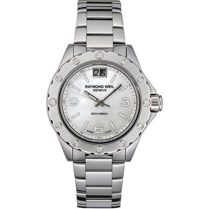 Представляем вашему вниманию часы фирмы Raymond Weil, артикул 6170-ST-05997. Родиной этой фирмы является Швейцария. Часы Раймонд Велл идеально подойдут любительницам изящной простоты и функциональности. Тип механизма в часах - кварцевый. Материалом корпуса и браслета является сталь. Часы украшены бриллиантами. На циферблате есть указатель даты. Среди прочих преимуществ часов - их водостойкость. Габариты корпуса - D 36 мм.