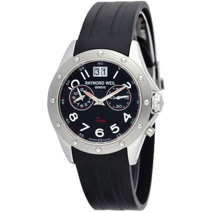 Швейцарские часы Raymond Weil, 47951-SR-05207 из коллекции Tango. Прекрасный образец классических часов Раймонд Велл для людей, ценящих, в первую очередь, своё время. Удобные часы, тип калибра - кварцевый. Материал корпуса - сталь. Материалом ремня является каучук. Имеется индикатор даты. Для тех, кто часто путешествует, имеется индикатор второго поясного времени. Размер часов D 42 мм.