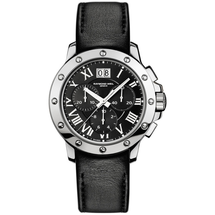 Швейцарские часы Raymond Weil Tango 4899-STC-00208 сочетают роскошь и элегантность стиля модерн с настоящей мужественностью и надежностью брутальных часов. Черный циферблат с римскими цифрами, защищенный сапфировым стеклом, и рельефный безель являются фирменными чертами коллекции Tango. Круглый корпус выполненный из нержавеющей стали и дополнен ремешком из высококачественной кожи. Точный кварцевый механизм, произведенный в Швейцарии, с функцией хронографа.