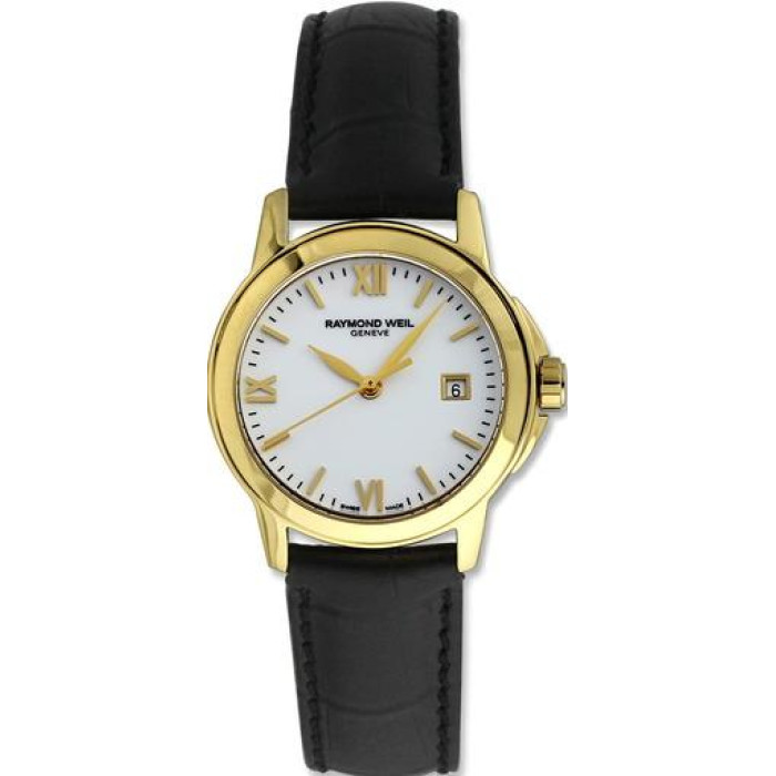 Швейцарские часы Raymond Weil, 5376-P-00307 из коллекции Tradition. Прекрасный образец классических часов Раймонд Велл для людей, ценящих, в первую очередь, своё время. В данной модели тип калибра - кварцевый. В качестве материала корпуса используется сталь. Материалом ремня является кожа. Способ покрытия корпуса - позолота. На циферблате есть указатель даты. Габариты корпуса - D 27 мм.