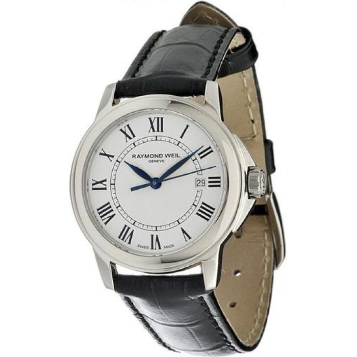 Представляем вашему вниманию часы фирмы Raymond Weil, артикул 5376-STC-00300. Родиной этой фирмы является Швейцария. Часы Раймонд Велл никогда не выйдут из моды, поскольку представляют собой олицетворение классики. В данной модели тип калибра - кварцевый. Материал корпуса - сталь. Материалом ремня является кожа. На циферблате есть указатель даты. Габариты корпуса - D 27 мм.