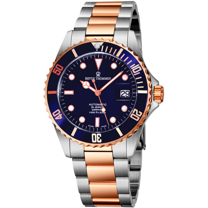 Нержавеющая сталь с покрытием из розового золота, рифленая с выгравированным логотипом Revue Thommen |