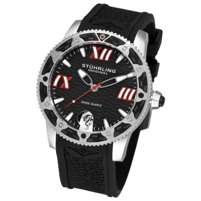 Ремешок из силиконового каучука с волнистым узором и логотип Stuhrling Wings (ширина 24 мм) |