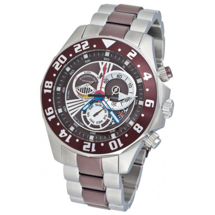 Рифленая заводная головка с толкателями и функциональными кнопками и логотипом Stuhrling S |