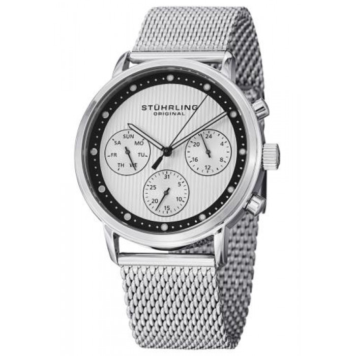 Материал заводной головки | Рифленая заводная головка с логотипом Stuhrling S и функциональными кнопками |