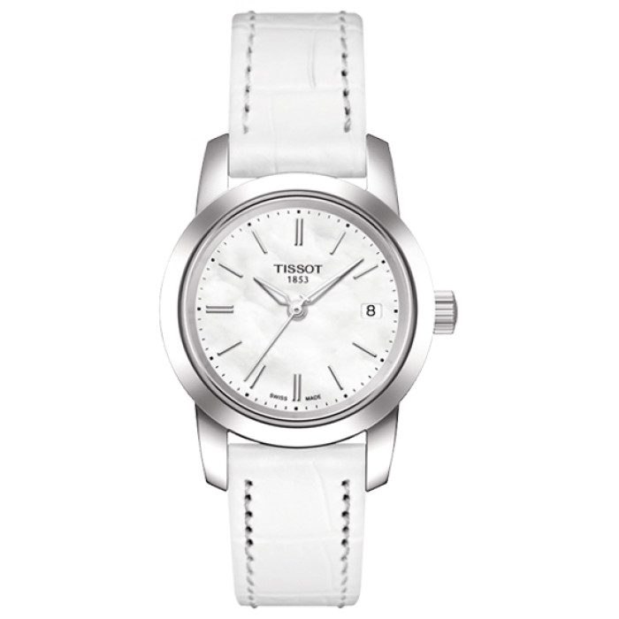 Часы с перламутровым циферблатом, изящными индексами и функцией даты дополнены белым фактурным ремешком с классической застежкой. Им не страшны любые капризы моды, ведь они созданы для того, чтобы стать вневременной классикой. Корпус из нержавеющей стали оснащен кварцевым механизмом, который обеспечивает высокую точность. Они имеют стандартную водонепроницаемость — 3 Bar, что представляет собой защиту от брызг, а стекло из сапфира гарантировано убережет их от царапин и мелких повреждений.