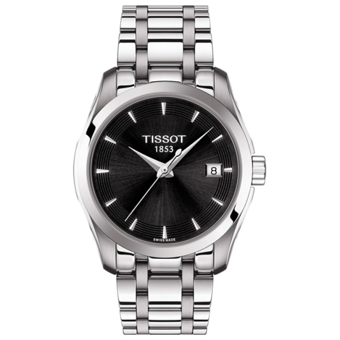 Часы Tissot Couturier Lady T035.210.11.051.01 — эффектная и непревзойденная модель из коллекции T-CLASSIC впечатляющая красотой классических линий. Серебристые индексы придают красивый контраст классическому черному циферблату, который защищен от появления царапин стеклом из сапфира, а стальной корпус швейцарских часов Tissot с кварцевым механизмом закреплен роскошным серебристым браслетом из нержавеющей стали с застежкой в виде "бабочки".