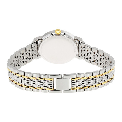 Небольшой серебристый циферблат с желтыми индексами демонстрирует очевидную современность этих восхитительных женских часов. Корпус с PVD-покрытием оснащен кварцевым механизмом швейцарского качества и дополнен шикарным браслетом из нержавеющей стали с удобной складной застежкой, звенья которого декорированы блестящими желтыми вставками.