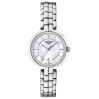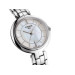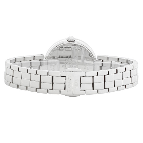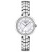 Изящные индексы в форме тонких графических линий придают утонченности перламутровому циферблату с функцией даты. Серебристый стальной корпус оснащен точным кварцевым механизмом и закреплен браслетом из нержавеющей стали с застежкой в виде бабочки с кнопками.