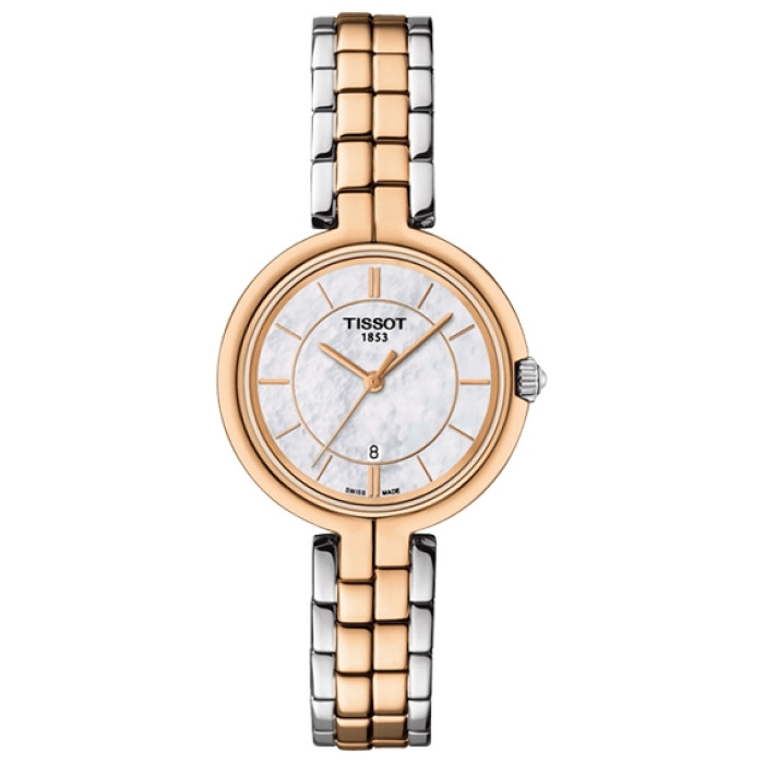 Классические женские часы Tissot Flamingo T094.210.22.111.00 из коллекции T-CLASSIC — шикарная модель с оригинальным дизайном, она универсальна и прекрасно подойдет для любого случая.