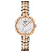 Стальной корпус с PVD-покрытием оснащен точным кварцевым механизмом и закреплен серебристым браслетом, который декорирован звеньями цвета розового золота и дополнен прочной застежкой в виде бабочки с кнопками.
