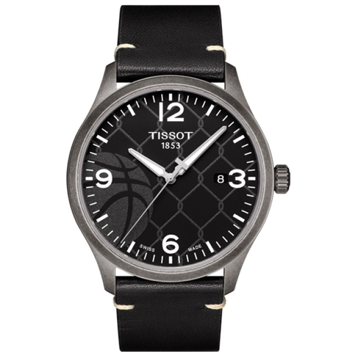 Часы Tissot Gent XL 3X3 Street Basketball T116.410.36.067.00 из SPECIAL COLLECTIONS посвящены уличному баскетболу. Циферблат антрацитового цвета с арабскими цифрами и окошком даты украшает оригинальный рисунок, на котором изображены сетка и баскетбольный мяч.