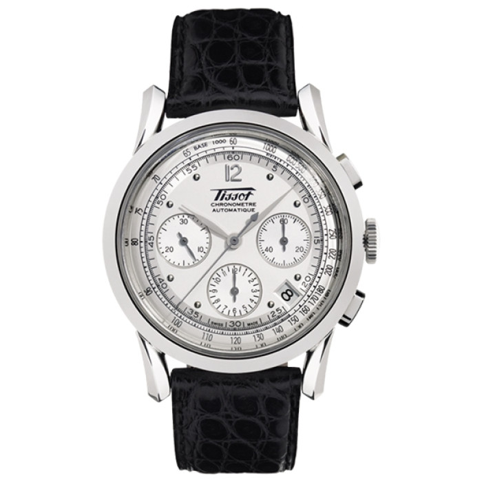 Сквозь заднюю гравированную крышку корпуса, выполненную в стиле 19 века, виден позолоченный сектор автоподзавода механизма, на который нанесены даты основания компании Tissot - 1853 и юбилейный 2003 год.