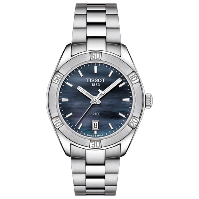 Индексы оттенка серебра идеально смотрятся на фоне синего циферблата с окошком даты, а корпус часов Tissot с кварцевым механизмом изготовлен из прочной нержавеющей стали.