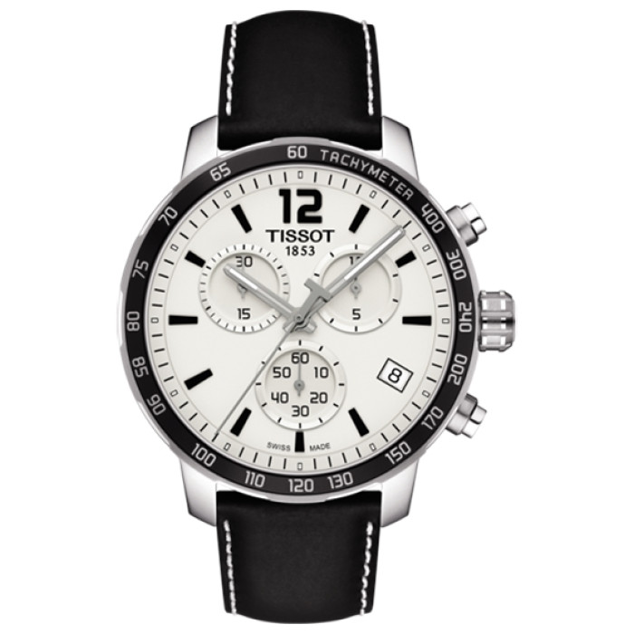 Стальной корпус часов содержит точный кварцевый механизм и дополнен красивым черным ремешком из натуральной кожи с классической застежкой. Шкала тахиметра на строгом черном безеле используется для определения скорости на основании времени в пути.