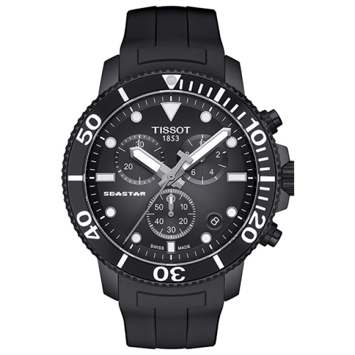 Часы Tissot Seastar 1000 Chronograph T120.417.37.051.02 из коллекции T-SPORT — модель в высоким уровнем водонепроницаемости до 30 бар станут отличным вариантом для дайвинга.